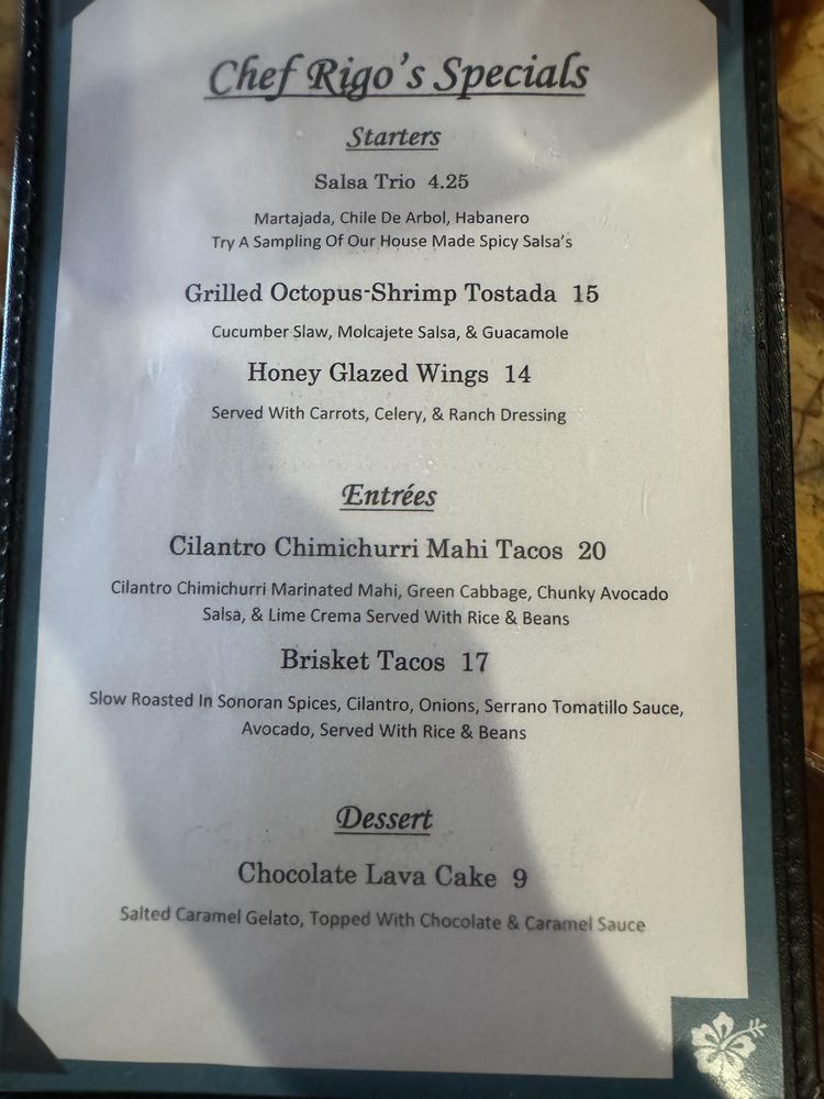 Flautas de carnitas, cheese nachos with guacamole, fried calamari, empanadas picadillo & ceviche